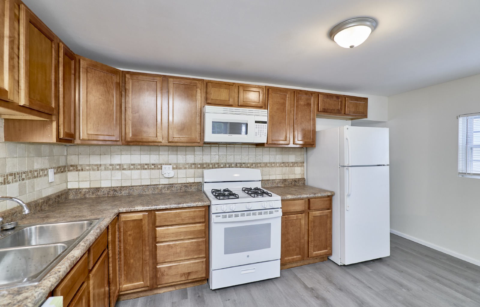 This stunning, professionally rehabbed 2-bedroom home sits on a large lot in a quiet, family-friendly neighborhood and is ready for new tenants to call it home. Enjoy an open and inviting floor plan featuring a chef-inspired kitchen with custom cabinetry, tile back splash, and a modern white appliance package. The spacious living area boasts luxury vinyl flooring throughout, creating a bright, seamless flow. The super clean, unfinished basement provides plenty of storage space. Step outside to a large backyard oasisperfect for relaxing or entertaining. Conveniently located near parks, shopping, and dining. Pets welcome with approval and additional fees. Homes this nice dont last longschedule your showing today!