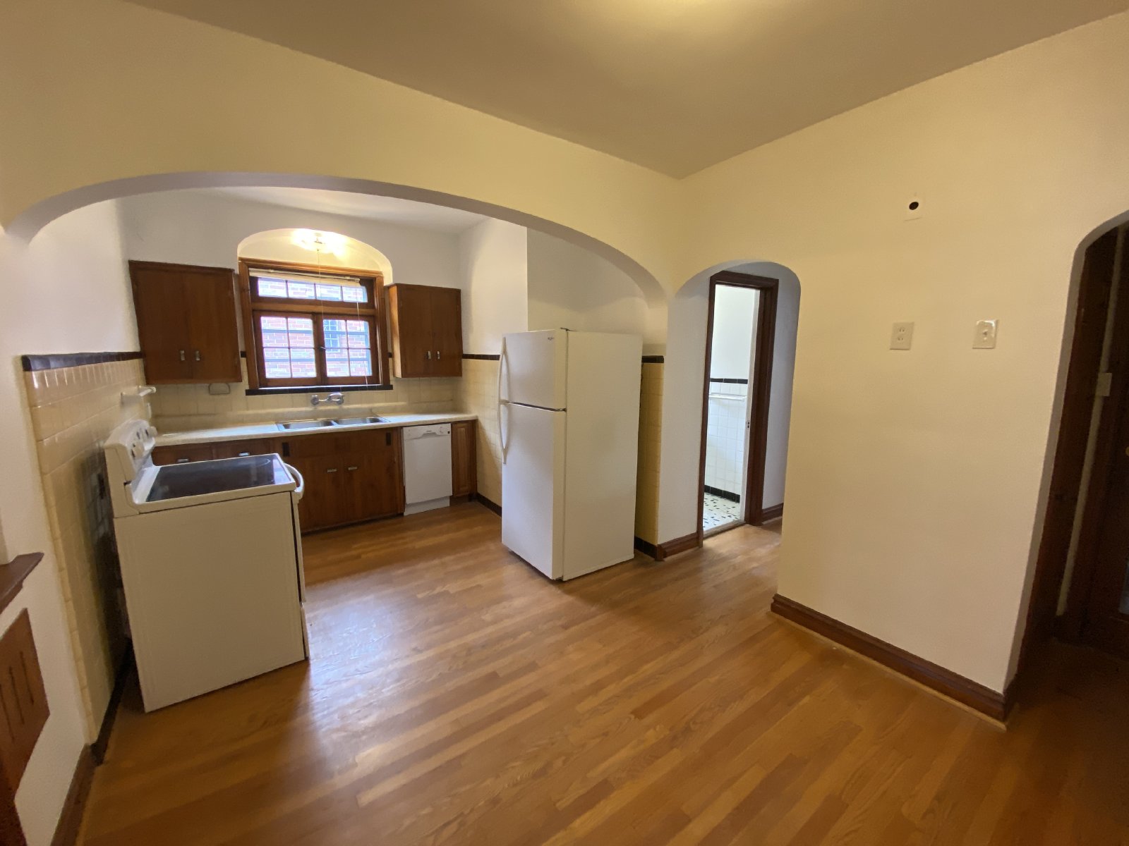 Delightful 2nd floor apartment in 1930's building with original woodwork and tons of charm is waiting for new tenants to call it home. Decorative fireplace in spacious living room, gleaming hardwood floors, and eat-in kitchen. Large separate dining room is perfect for a home office as well. Huge bedroom has enclosed sun porch. Laundry hook-ups and storage in basement. 1 car garage makes parking a breeze! Beautiful tree-lined street in a quiet neighborhood, steps away from Francis Park! Pets allowed with approval plus additional fees. Landlord pays for Gas, Water, Sewer, and Trash. Hurry, this one won't last!