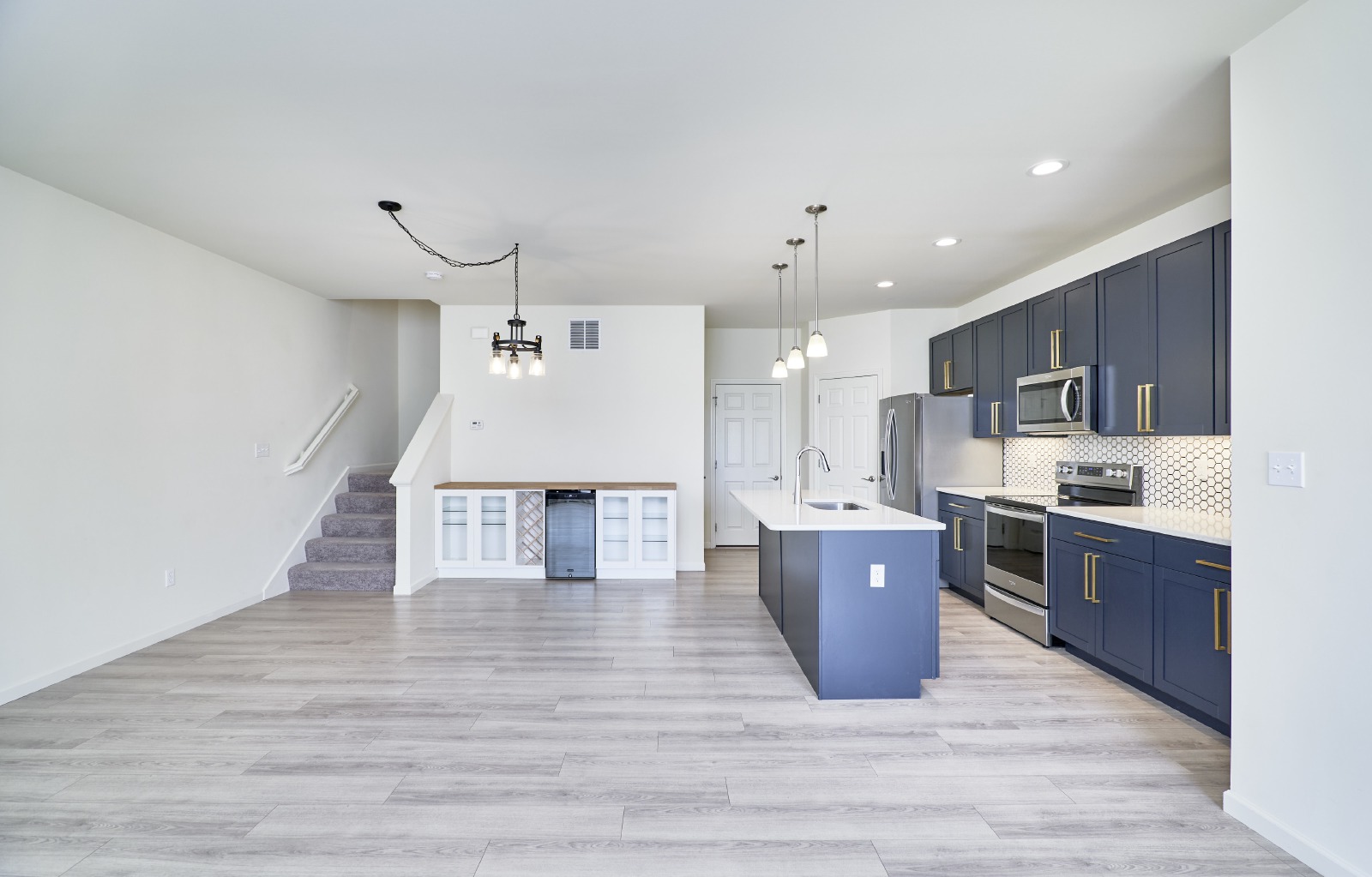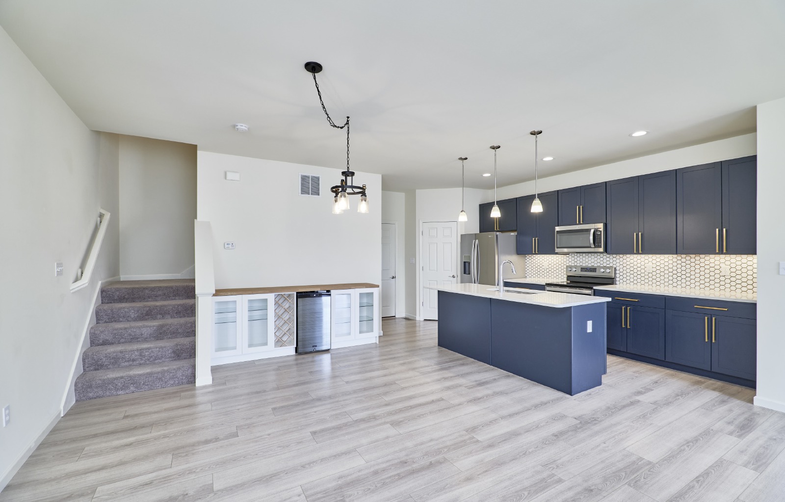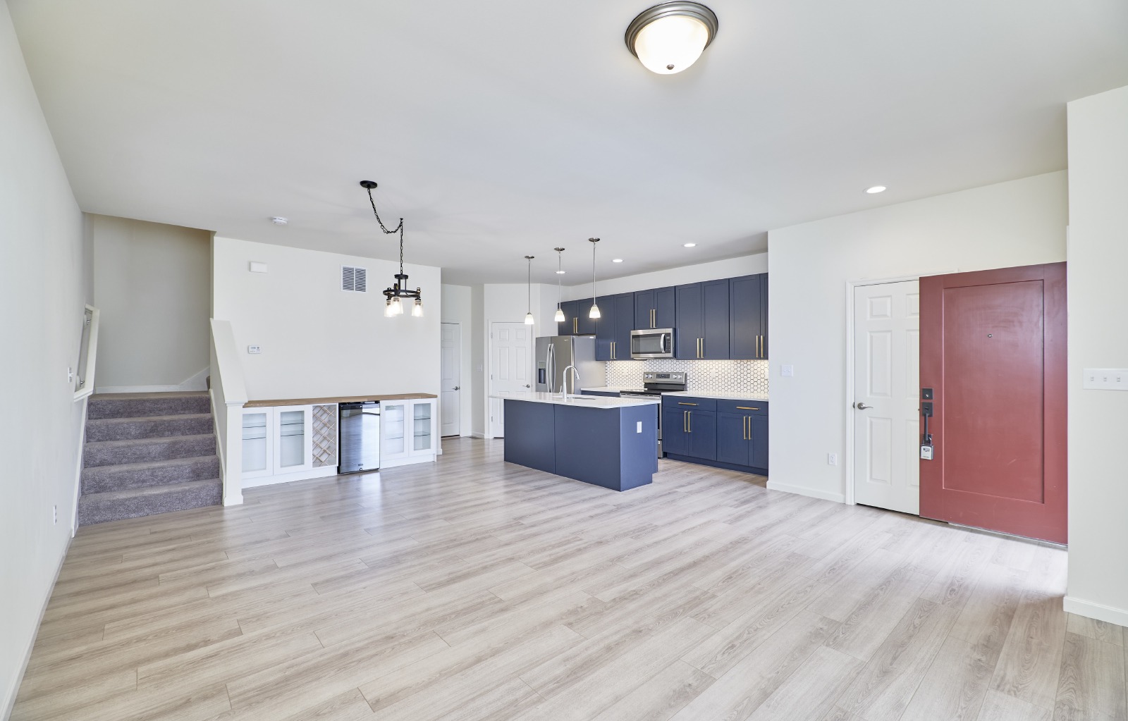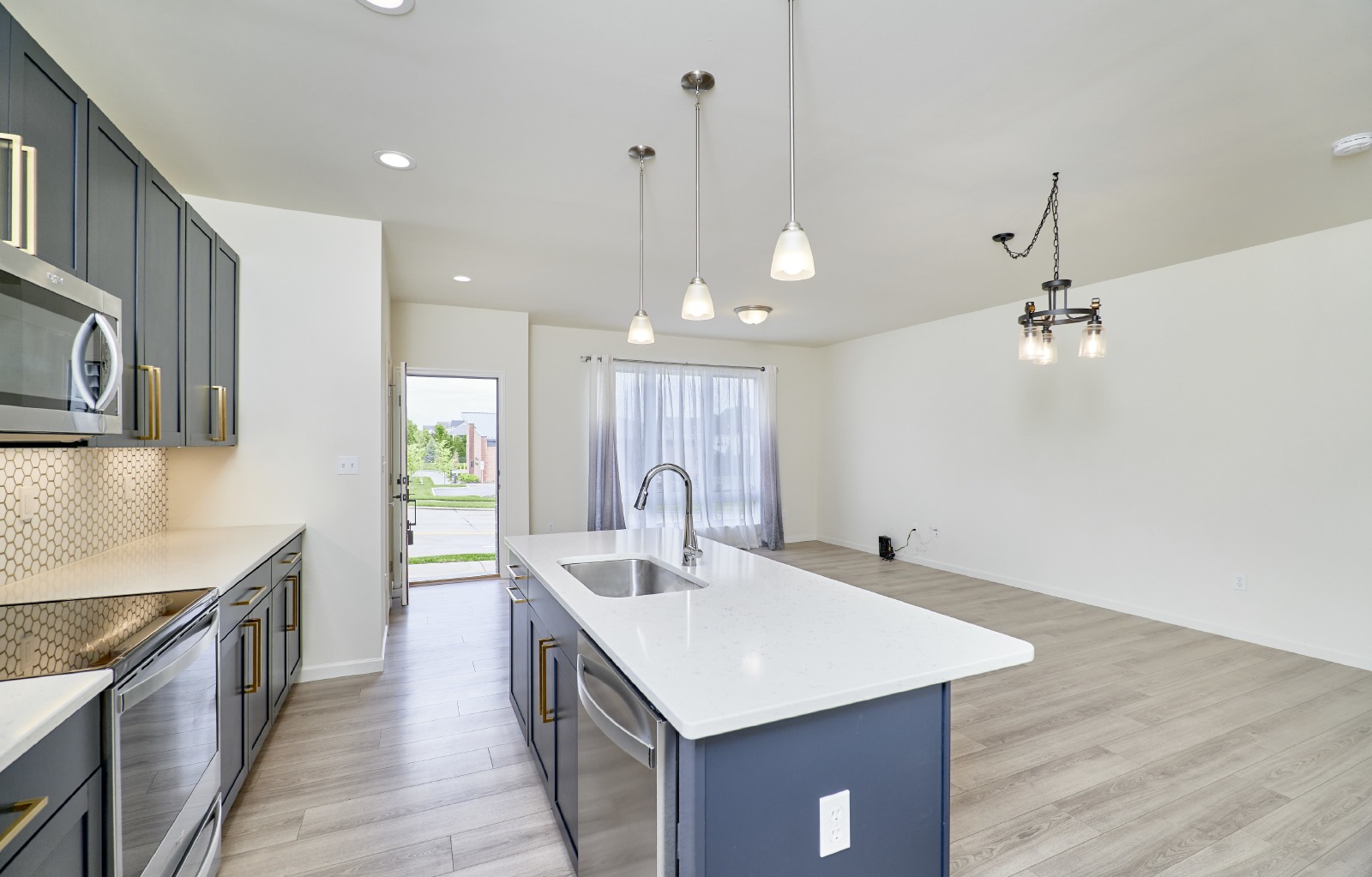 Welcome to this stunning 3-bedroom, 2.5-bath townhome of beautifully designed living space. Perfectly suited for comfortable living and stylish entertaining. Step inside to an open-concept main floor featuring 9 ceilings, expansive windows that flood the space with natural light, and stylish plank laminate flooring throughout. The chef-inspired kitchen flows seamlessly into the dining and living areas, creating a perfect space for gatherings. Upstairs, you'll find a spacious owners suite complete with a walk-in closet and private en-suite bath. Two additional bedrooms, a shared hall bath, and a dedicated laundry room provide function and flexibility for families or guests. This home blends comfort, style, and convenienceready for its next tenants to enjoy. This community is just minutes from The Streets of St. Charles, the Page Extension, and I-70. Pets require approval and additional fees. Schedule your showing today!