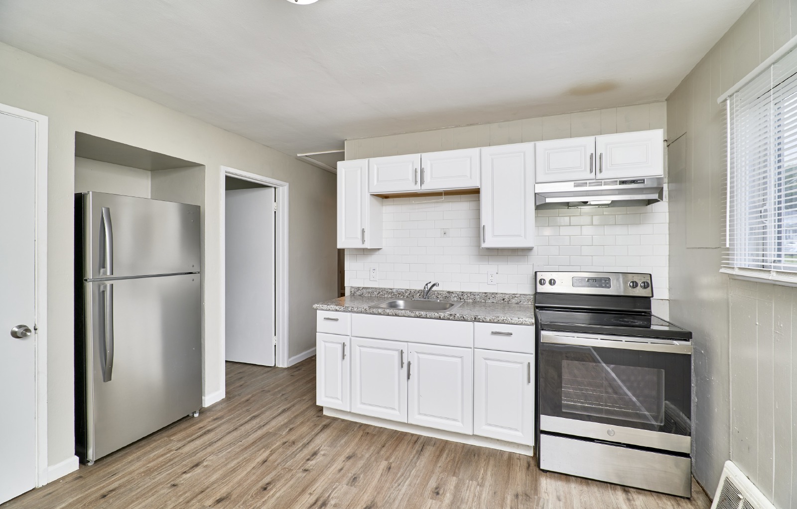 Welcome to this beautifully updated residence in the heart of St. John, featuring 3 spacious bedrooms. Inside, you'll be greeted by vinyl plank flooring, a modern color palette, and stylish light fixtures that add charm and sophistication throughout. The bright and inviting kitchen is a true standout, offering crisp white cabinetry, beautiful countertops, and stainless steel appliancesideal for both daily living and entertaining guests. The primary bedroom offers direct patio accessperfect for enjoying your morning coffee, reading, or relaxing in the fresh air. Step outside to a generous backyard, ideal for gatherings, play, or simply soaking in the outdoors.
